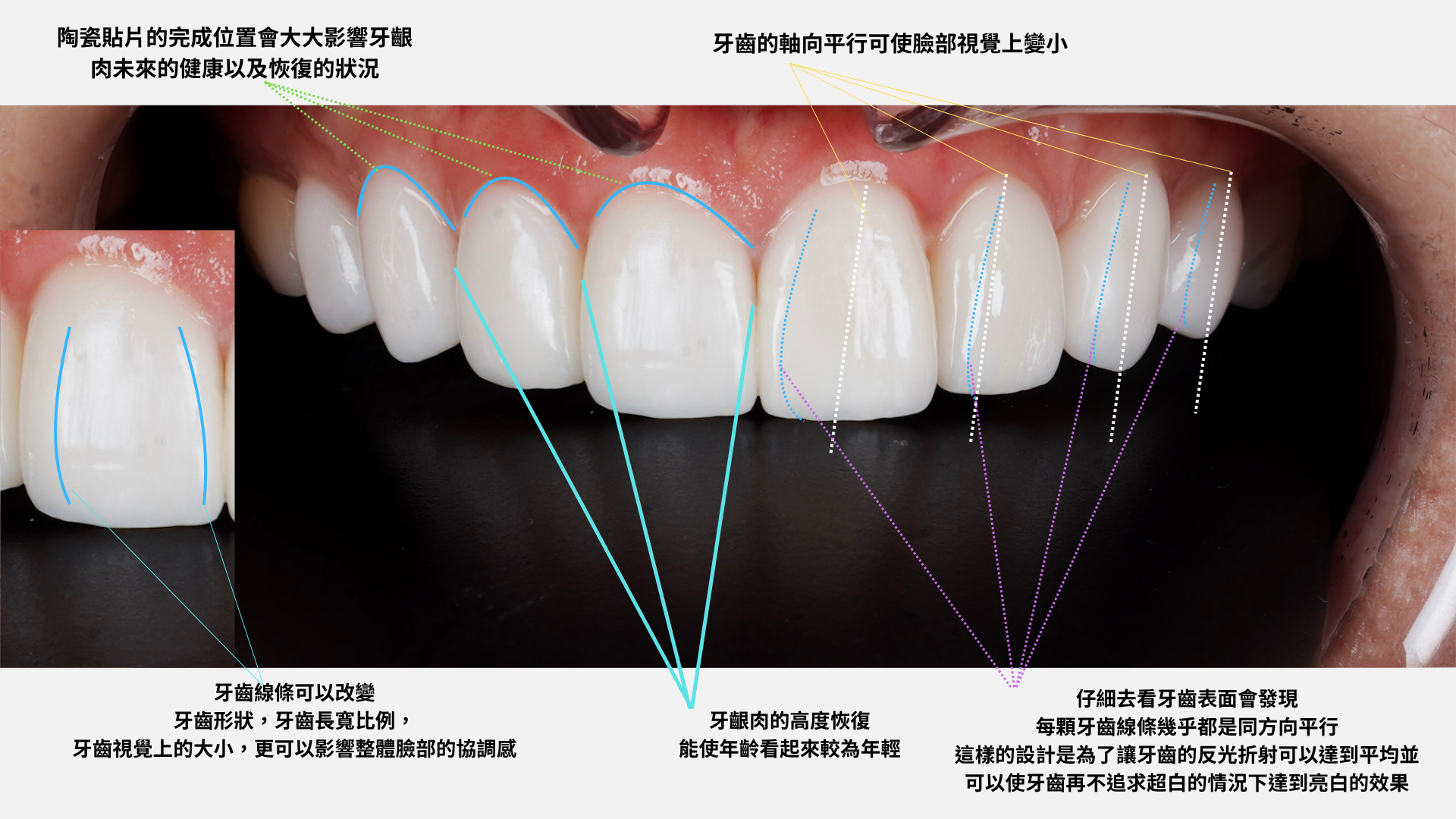 “真正美容牙科,會讓臉部逆齡同時改善咬合。思考患者臉部應該怎麼動、怎麼笑,絕對不是顏色白就好。”